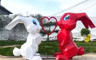 彩色不銹鋼雕塑是結合噴漆制作而成,在雕塑成形之后只需要簡單的打磨,然后刮膩子、噴漆,使得作品能夠表現豐富的色彩。相比鏡面、拉絲等不銹鋼雕塑的制作工藝來說,噴漆不銹鋼雕塑色彩表現豐富、耐用性下降,在長期的日曬雨淋作用下,可能出現起殼、顏色脫落的情況。